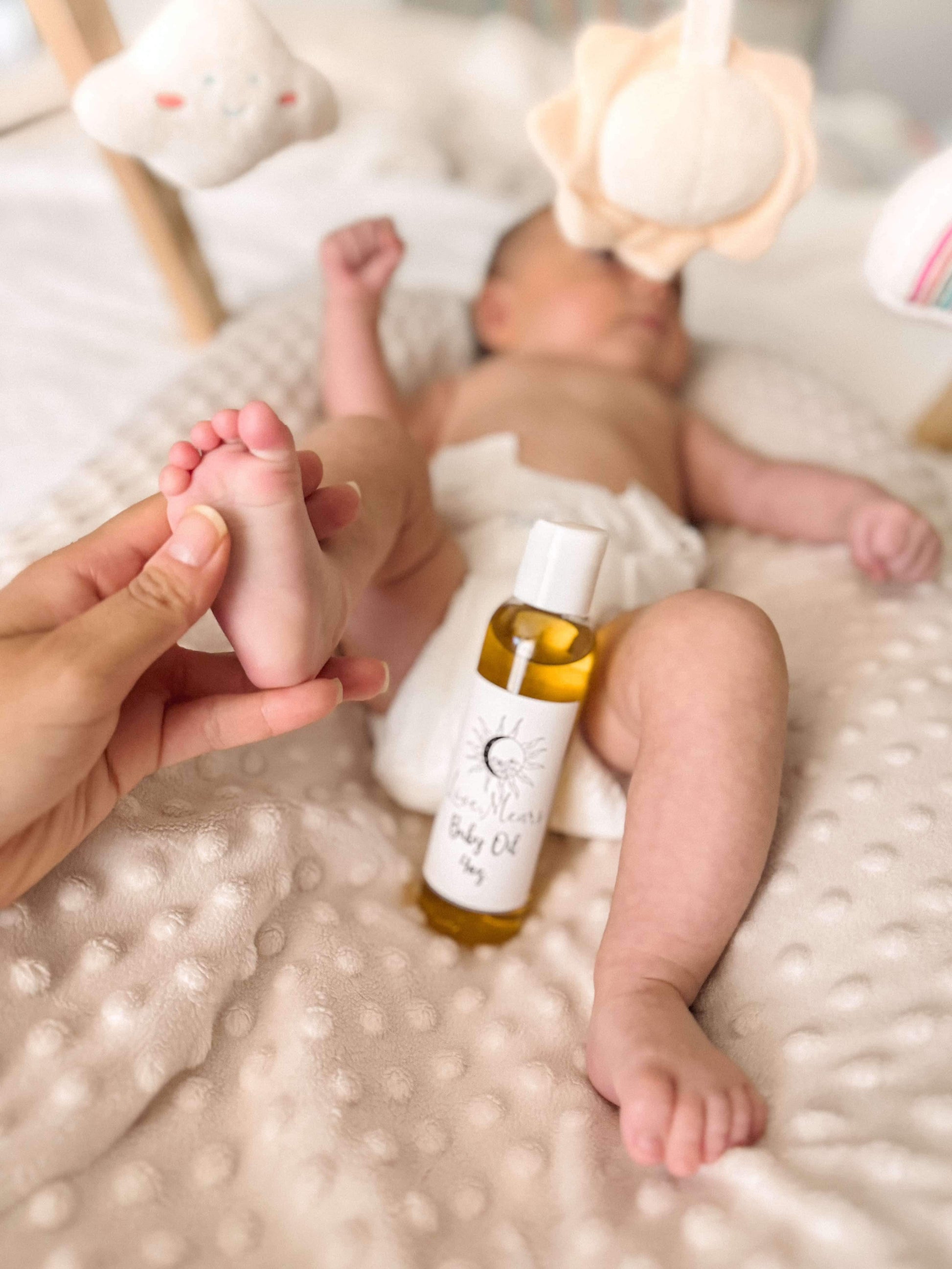 Our Sleepy Time Baby Oil contains Chamomile to encourage and promote sleep naturally to your little one.